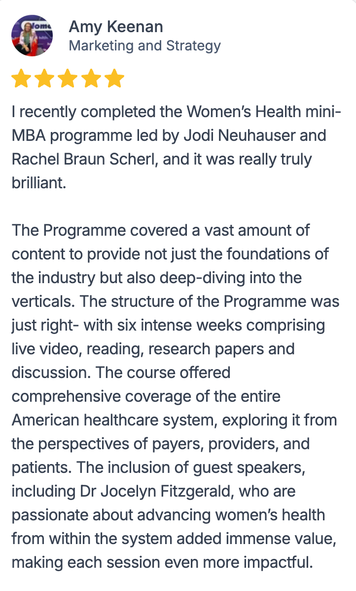 Last week we had over 150+ people registered for our sessions on The Business of Women’s Health. If you missed the sessions, there are a few more coming up in the next 2 weeks - see below.