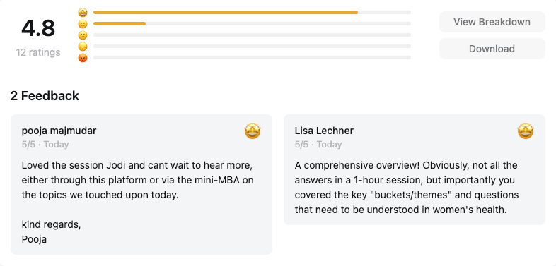 An enhanced network of 100+ new women’s health leaders, connected by our private platform and a private Slack channel.
