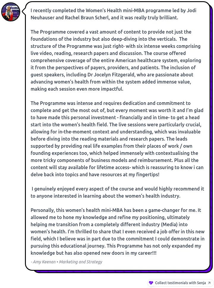 Join us for our 1-hour webinar (more details below) and the last session of the In Women’s Health Mini-MBA in 2024.